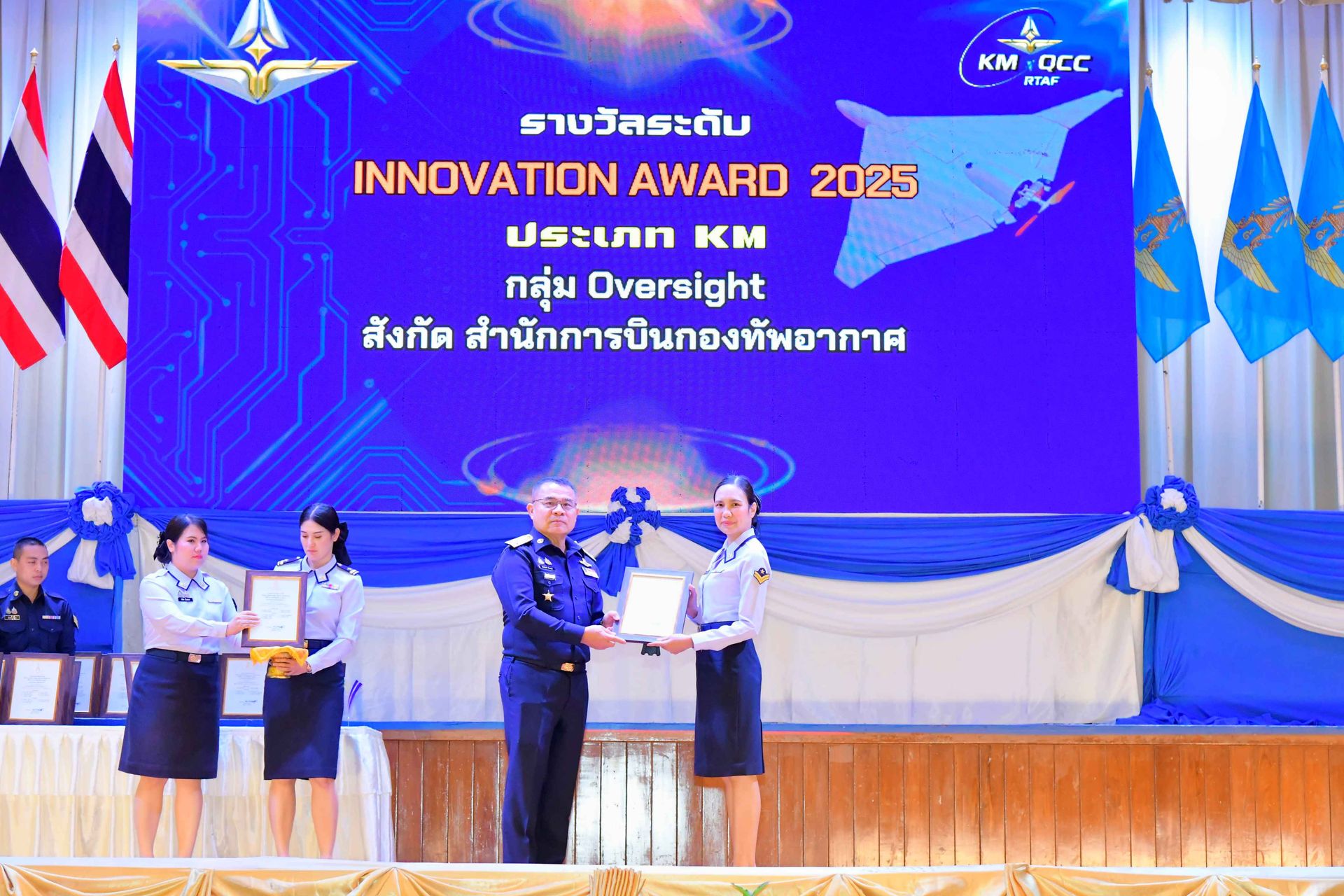 โดยมีกลุ่ม Oversight ตัวแทนข้าราชการสำนักงานการบินกองทัพอากาศ เข้ารับรางวัล Innovation Award ประเภทเครื่อง KM