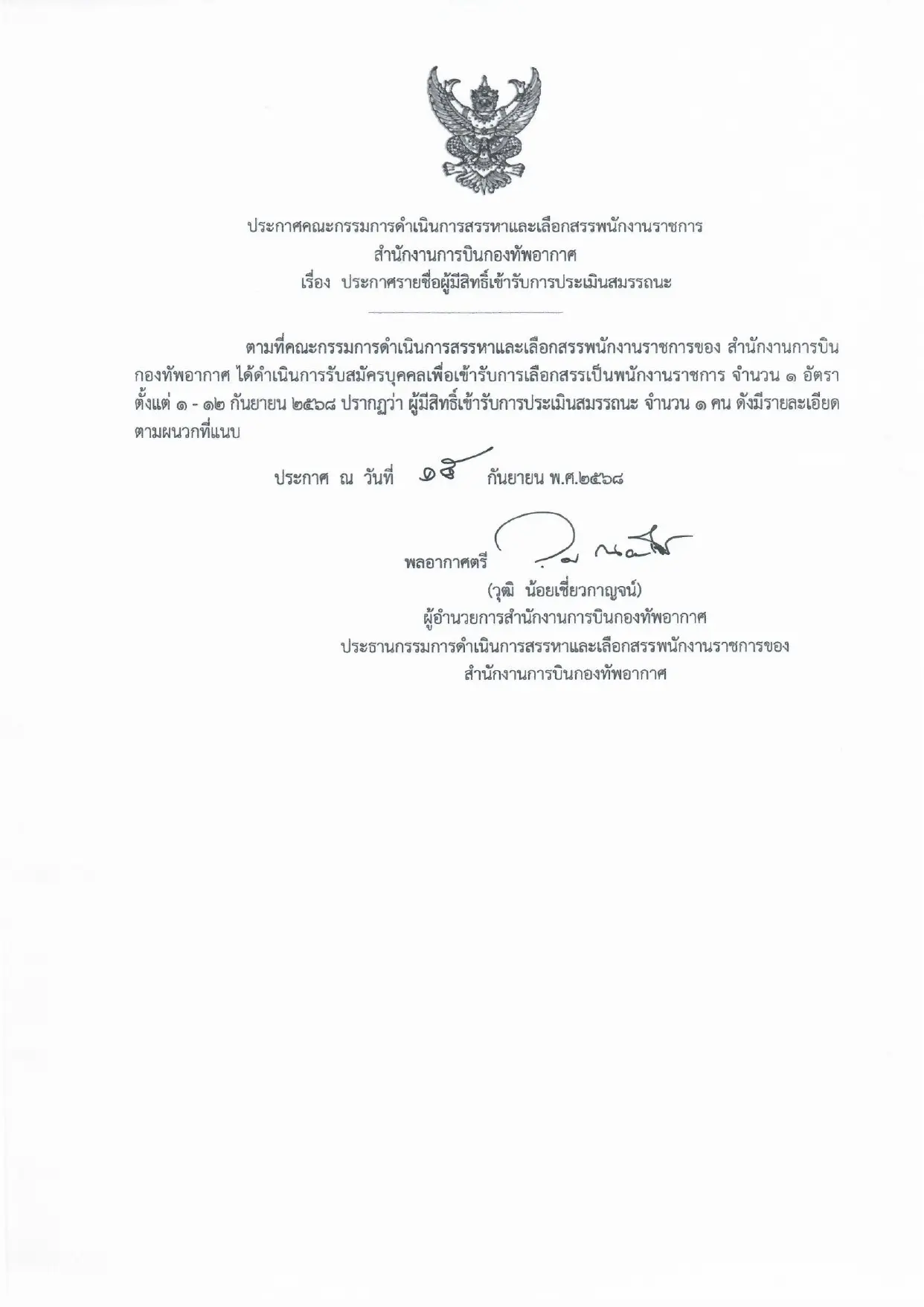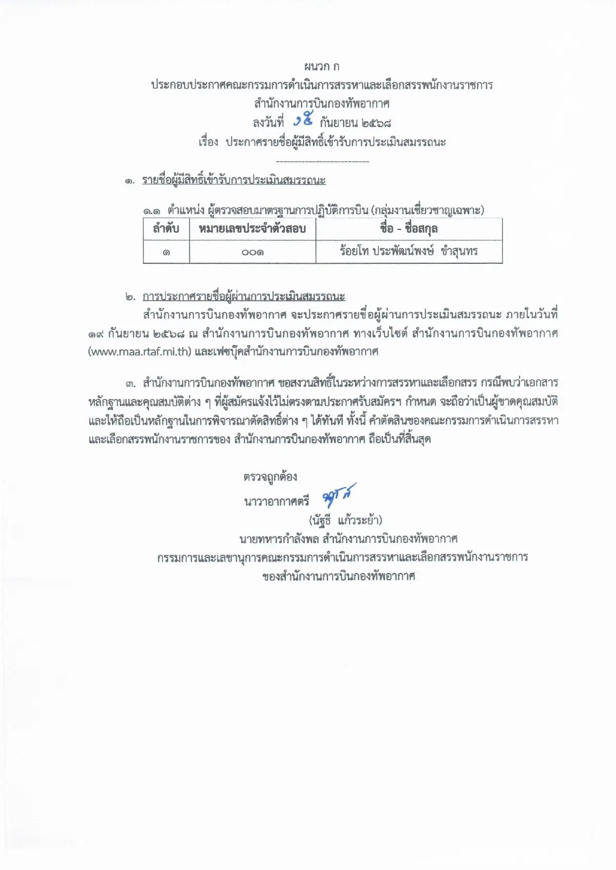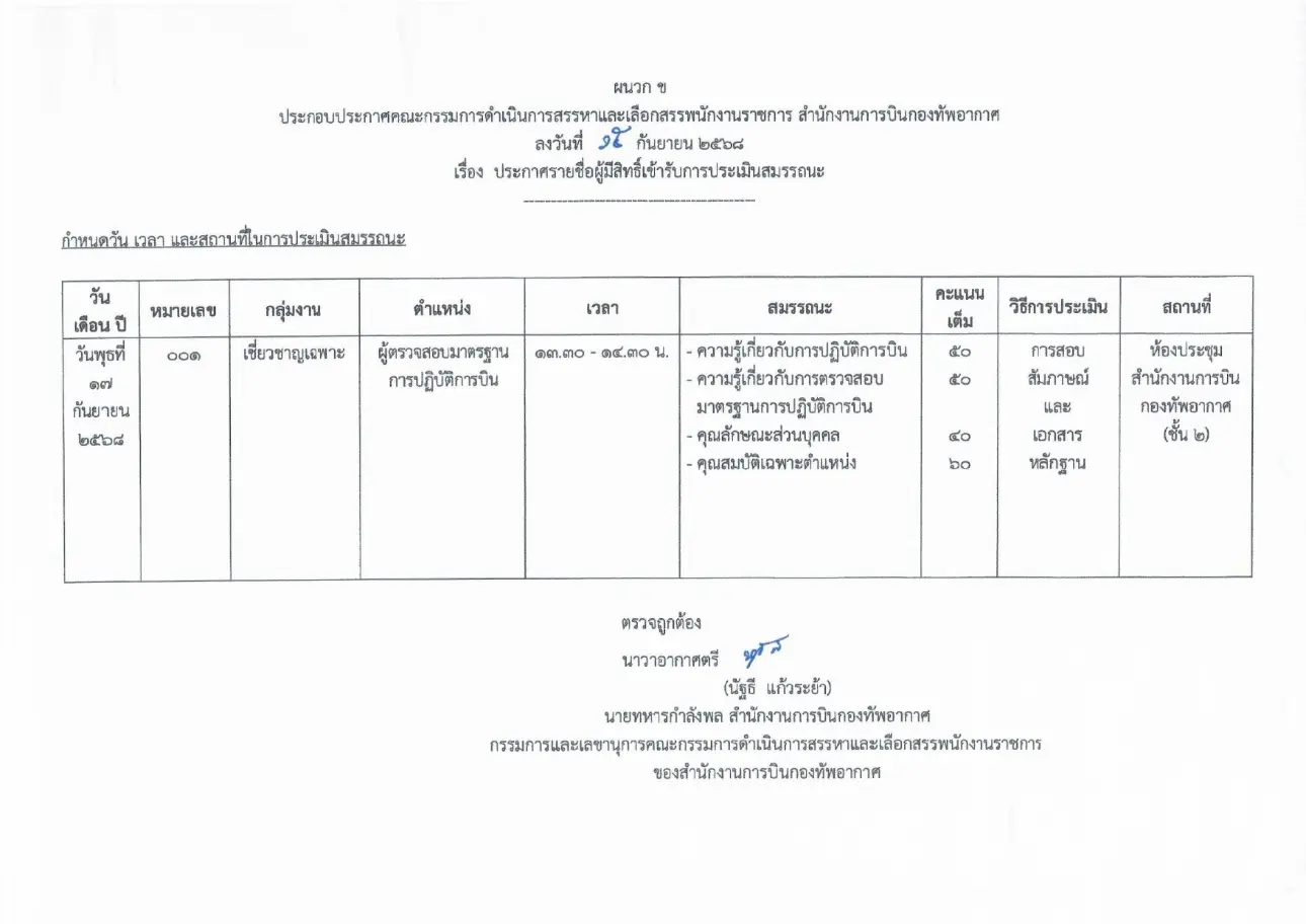 เรื่อง ประกาศรายชื่อผู้มีสิทธิเข้ารับการประเมินสมรรถนะ
